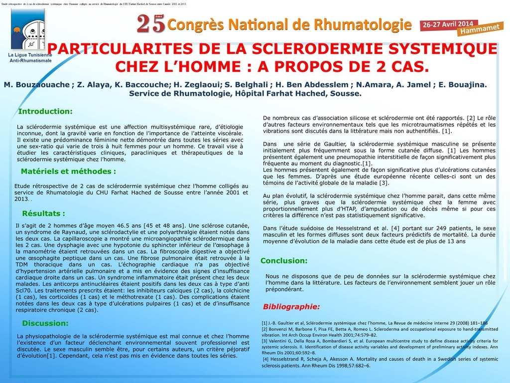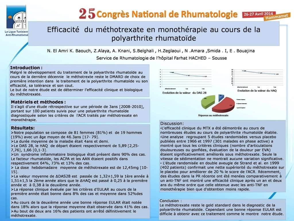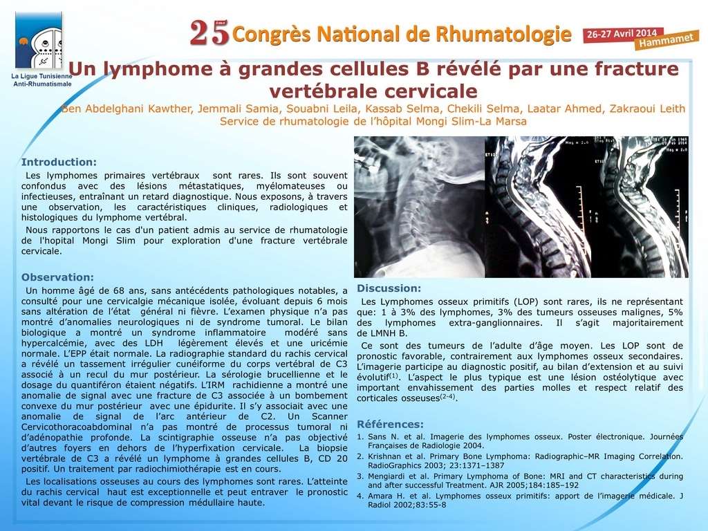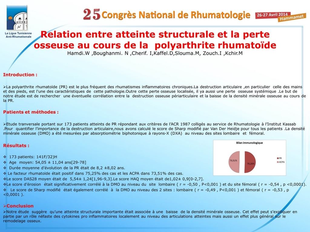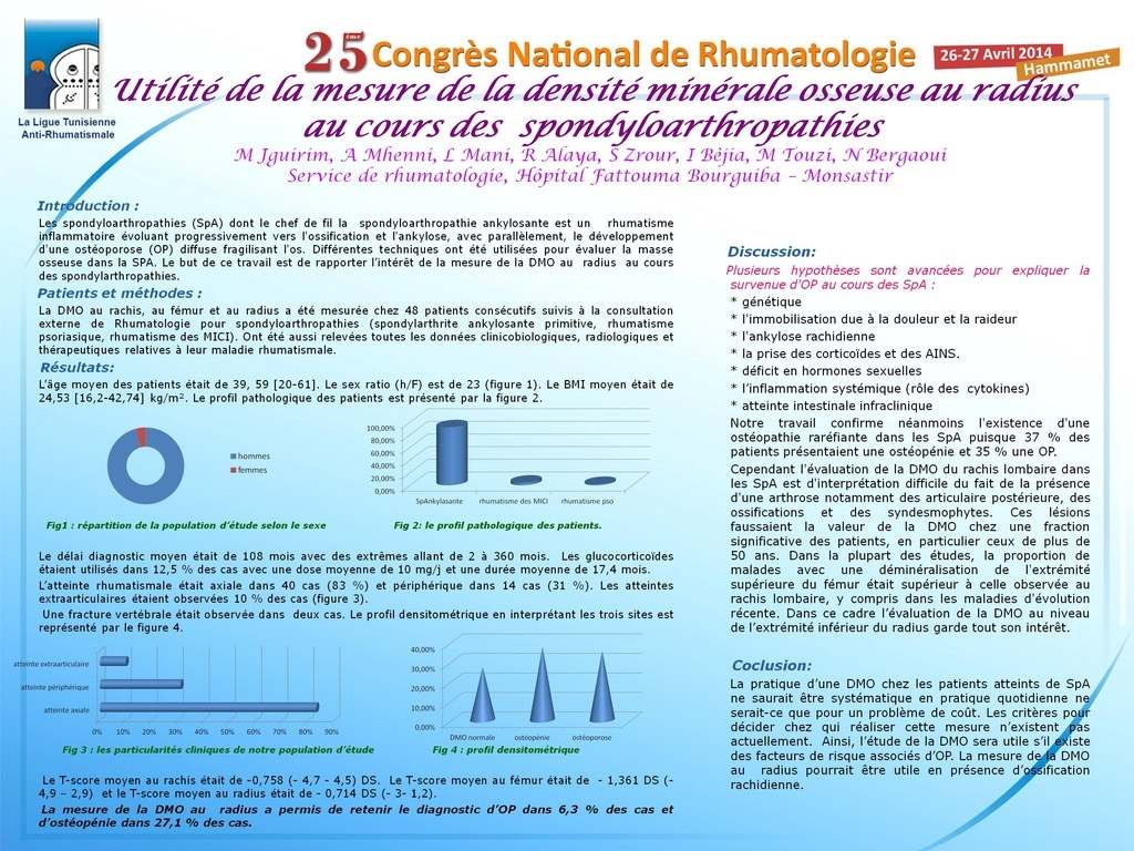 Auteurs: R Alaya, M Jguirim, A Mhenni, L Mani, S Zrour, I Bèjia, M Touzi, N Bergaoui Service de rhumatologie, Hôpital Fattouma Bourguiba - Monsastir