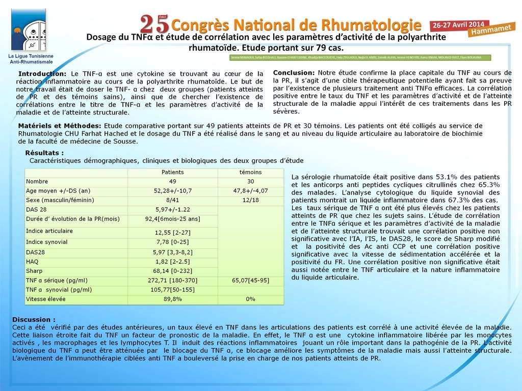 Auteurs: Th.guerman; I.Mahmoud; O. Saidane; R. Tekaya; H. Sahli; L. Abdelmoula; R. Zouari