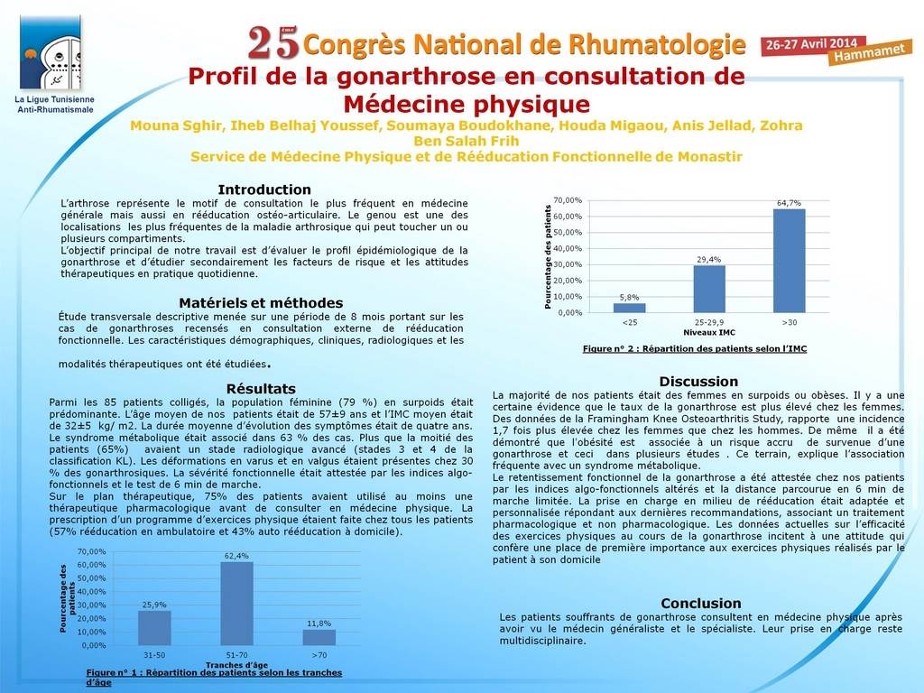 Adresse: Service de rhumatologie de l Hôpital Mongi Slim La Marsa